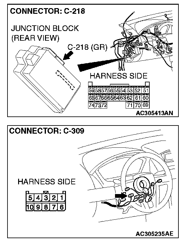 STEP 4. Check the wiring harness between column switch connector C-309 (terminal 6) and ETACS-ECU connector C-218 (terminal 66).