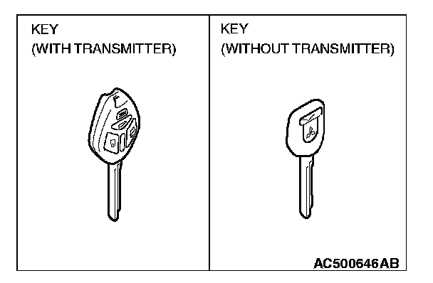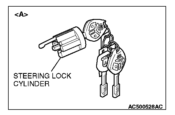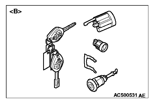 - When adding the ignition key separately, or replacing the components by the steering lock cylinder of illustration ]A[ (the ignition key is simultaneously supplied) or the key set of illustration ]B[, register the encrypted code. Refer to Chassis Electrical, Encrypted Code Registration Criteria Table.