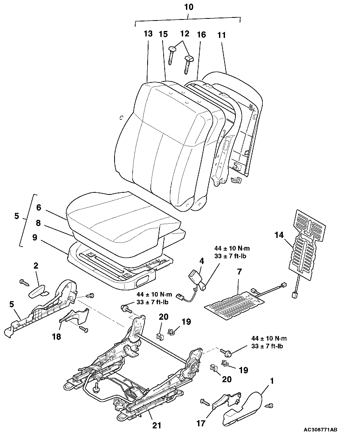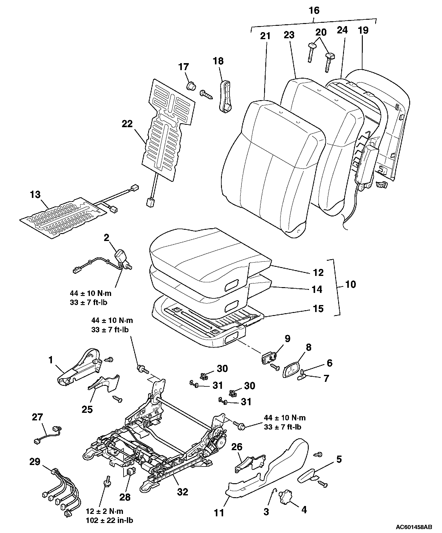 WARNING: Never attempt to disassemble or repair the seat slide sensor. If faulty, replace it.