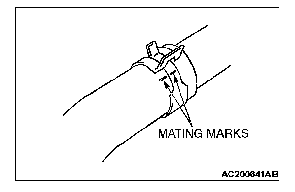 Make mating marks on the radiator hose and the hose clamp. Disconnect the radiator hose.