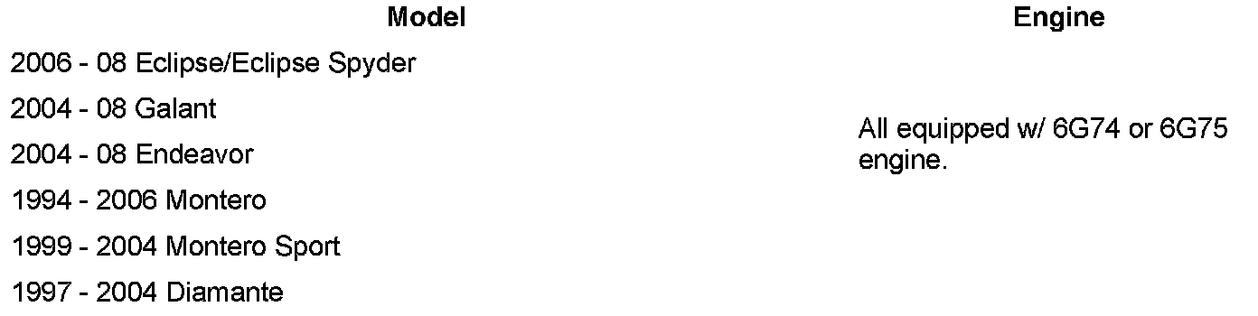 All Service Manuals for Applicable Vehicles. Due to the number of applicable Service Manuals, individual page numbers are not provided. Apply this information to the appropriate pages in section 11B - ENGINE OVERHAUL, of the applicable Service Manual.