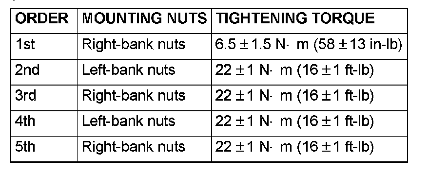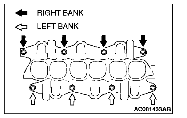 2. Tighten the intake manifold mounting nuts by the following procedure.