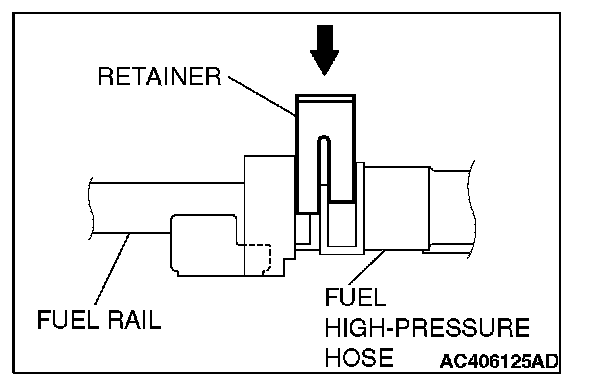 2. Install the fuel high-pressure hose to the fuel rail securely and push the lock of fuel high-pressure hose downward and lock thoroughly.