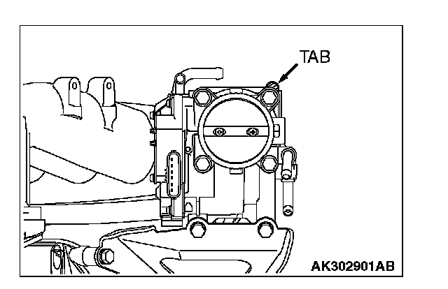 Install the throttle body gasket so that the tab is positioned as shown in the illustration.