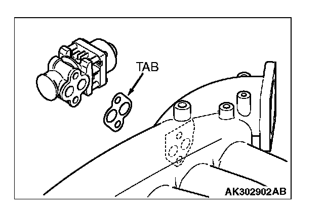 Install the exhaust gas recirculation valve gasket so that the tab is positioned as shown in the illustration.