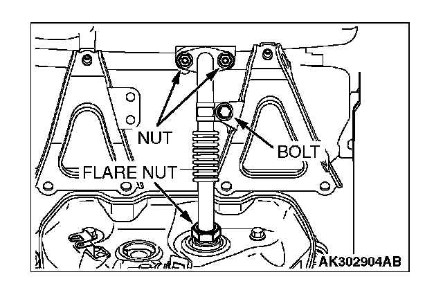 1. Tighten temporarily the flare nut of exhaust gas recirculation pipe and the nut shown in the illustration.