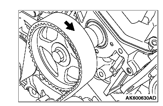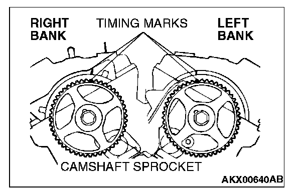 4. Align the timing mark on the right bank camshaft sprocket with the timing mark on the rocker cover.