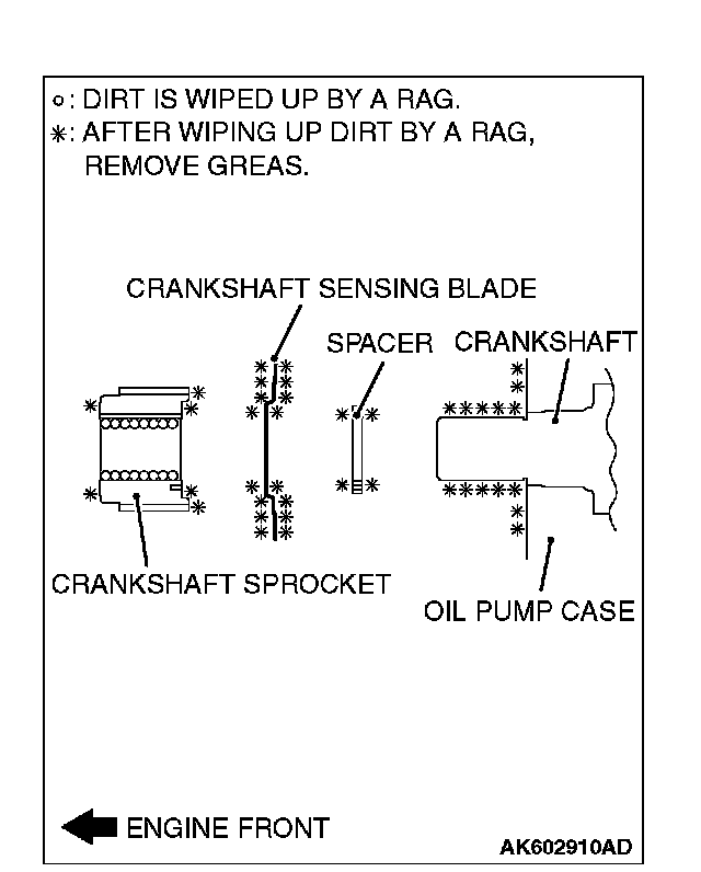 2. Clean and degrease the mating surfaces of the crankshaft sprocket, sensing blade, and spacer.