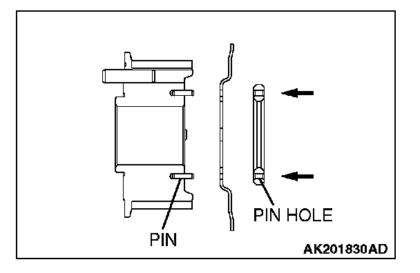 3. Align the location of pin and pin hole, and then apply equal force in the direction of the arrow.