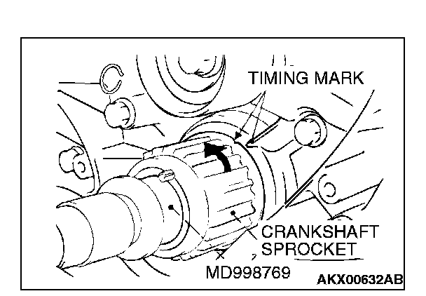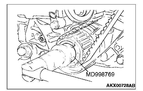 1. Install special tool MD998769 and the crankshaft pulley washer, and then tighten the crankshaft bolt.