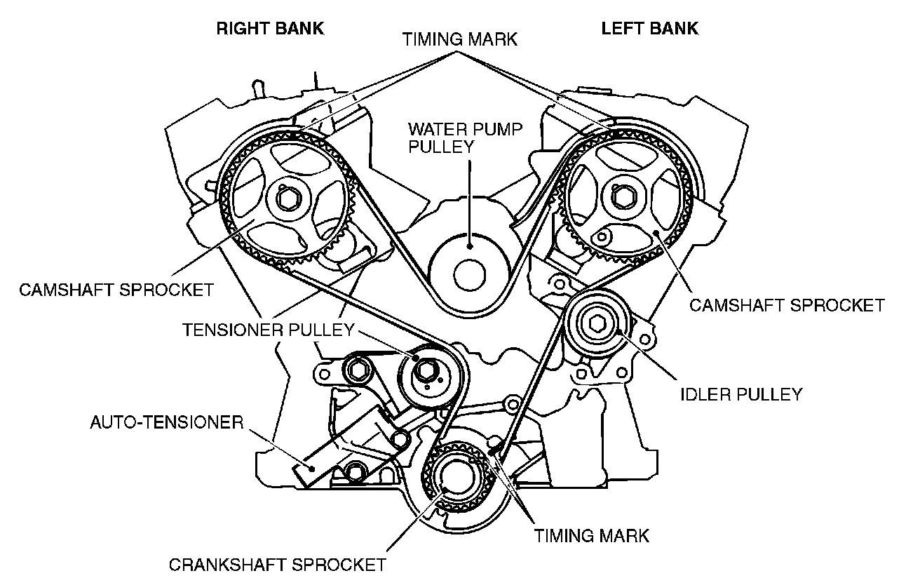8. Check to see that the timing marks of all the sprockets are in alignment.