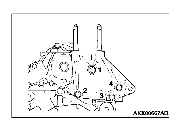 The mounting bolts of the right engine support bracket must be tightened in the order shown in the illustration.