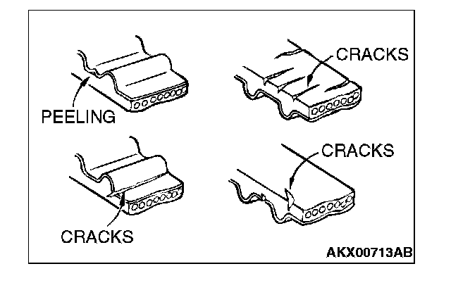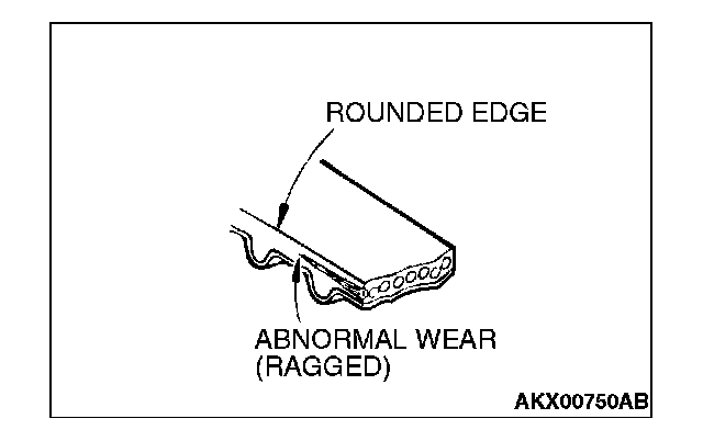 6. Abnormal wear of belt sides. Normal wear is indicated if the sides are sharp as if cut by a knife. Abnormal wear is indicated if the sides are ragged.