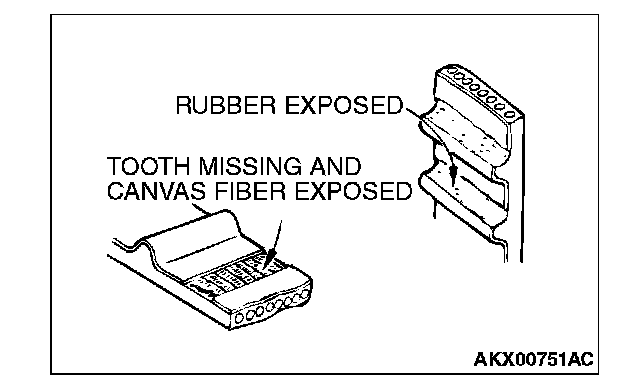 Replace the belt if any of the following conditions exist.