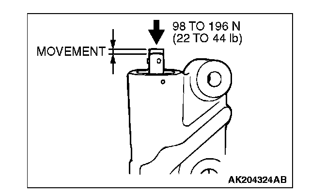 4. Press the rod with a force of 98 to 196 N (22 to 44 pounds) and measure the movement of the rod.
