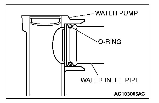 Fit an O-ring into the O-ring groove located at the end of the water inlet pipe and apply water or coolant to the O-ring or the inside of the mounting surface of the water pump for insertion.