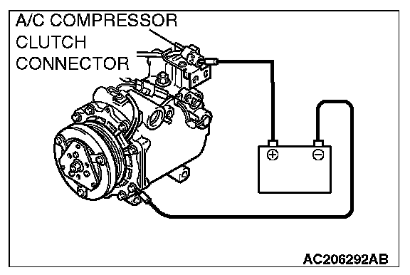 2. Connect positive battery voltage directly to the connector for the A/C compressor clutch.