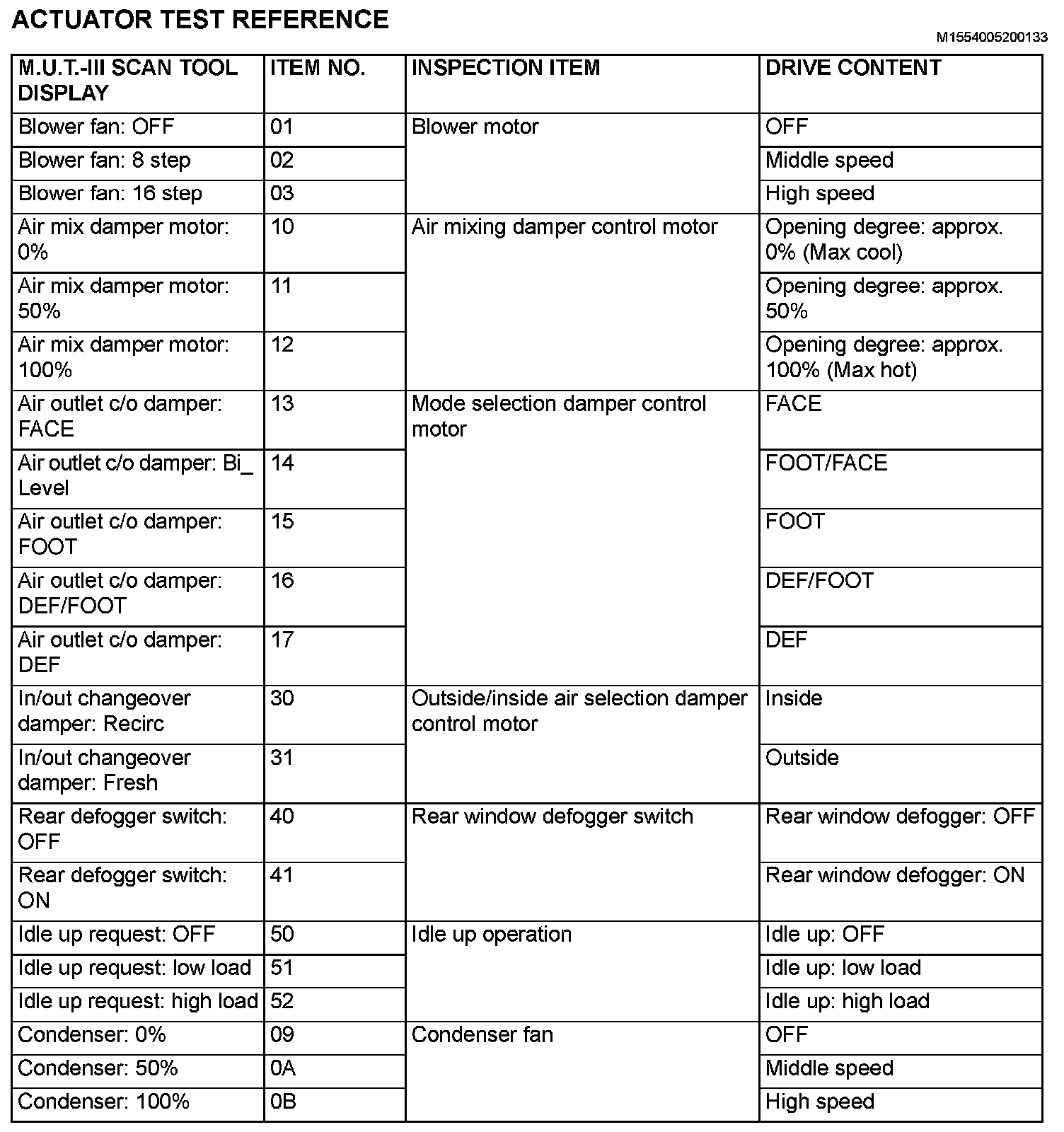 Actuator Test Reference