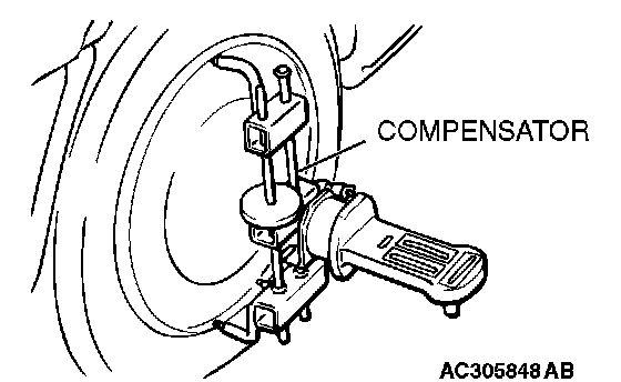 NOTE: For vehicles with aluminum wheels, attach the camber/caster/kingpin gauge by using a compensator.