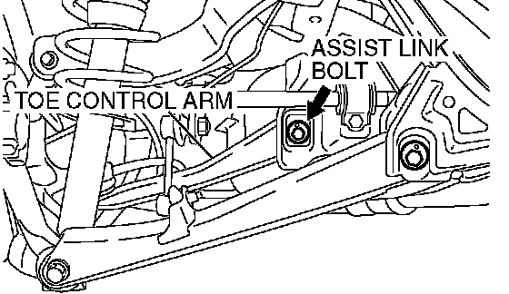CAUTION: When adjusting the toe, tighten the toe control arm and the trailing arm assembly, not the lower arm assembly.