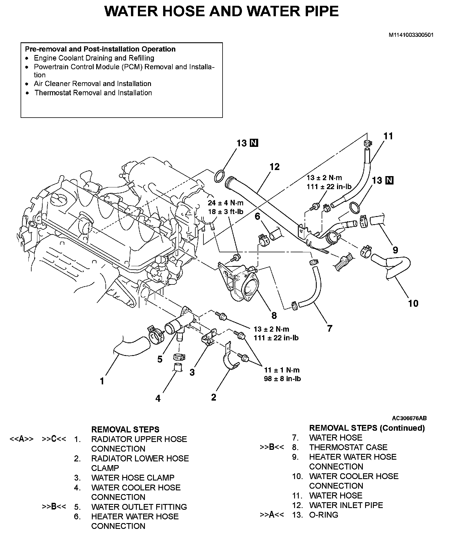 WATER HOSE AND WATER PIPEREMOVAL AND INSTALLATION [2.4L ENGINE]