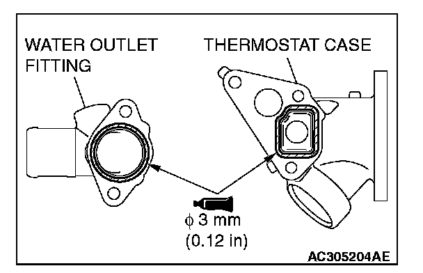 4. With the sealant still wet (within 15 minutes after the sealant is applied), install the thermostat case. Do not apply the sealant in an area more than the required.