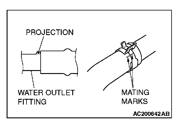 2. Align the mating marks on the radiator hose and hose clamp, and then connect the radiator hose.