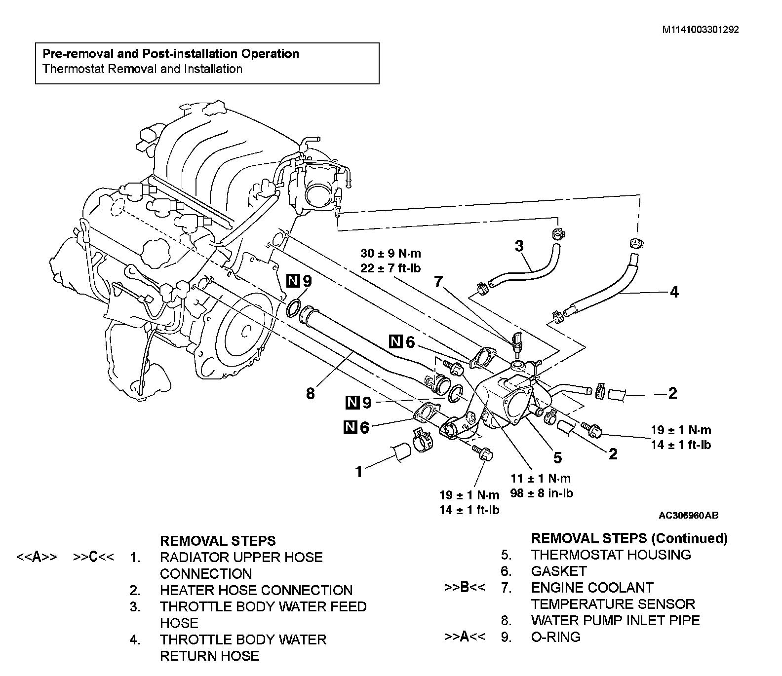 ]]B[[ THERMOSTAT CASE/WATER OUTLET FITTING INSTALLATION