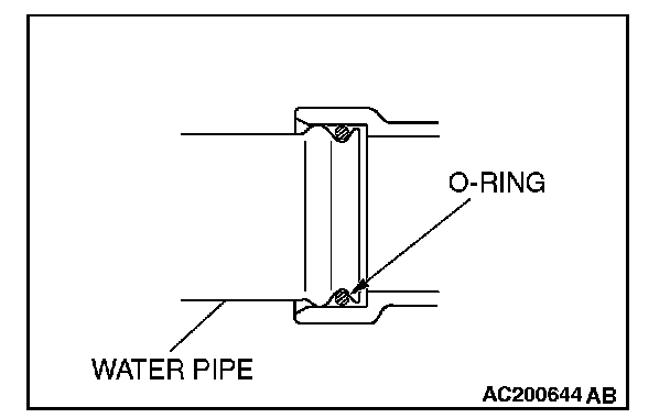 Insert the O-ring to the water pipe, and coat the outer portion of the O-ring with water or engine coolant.
