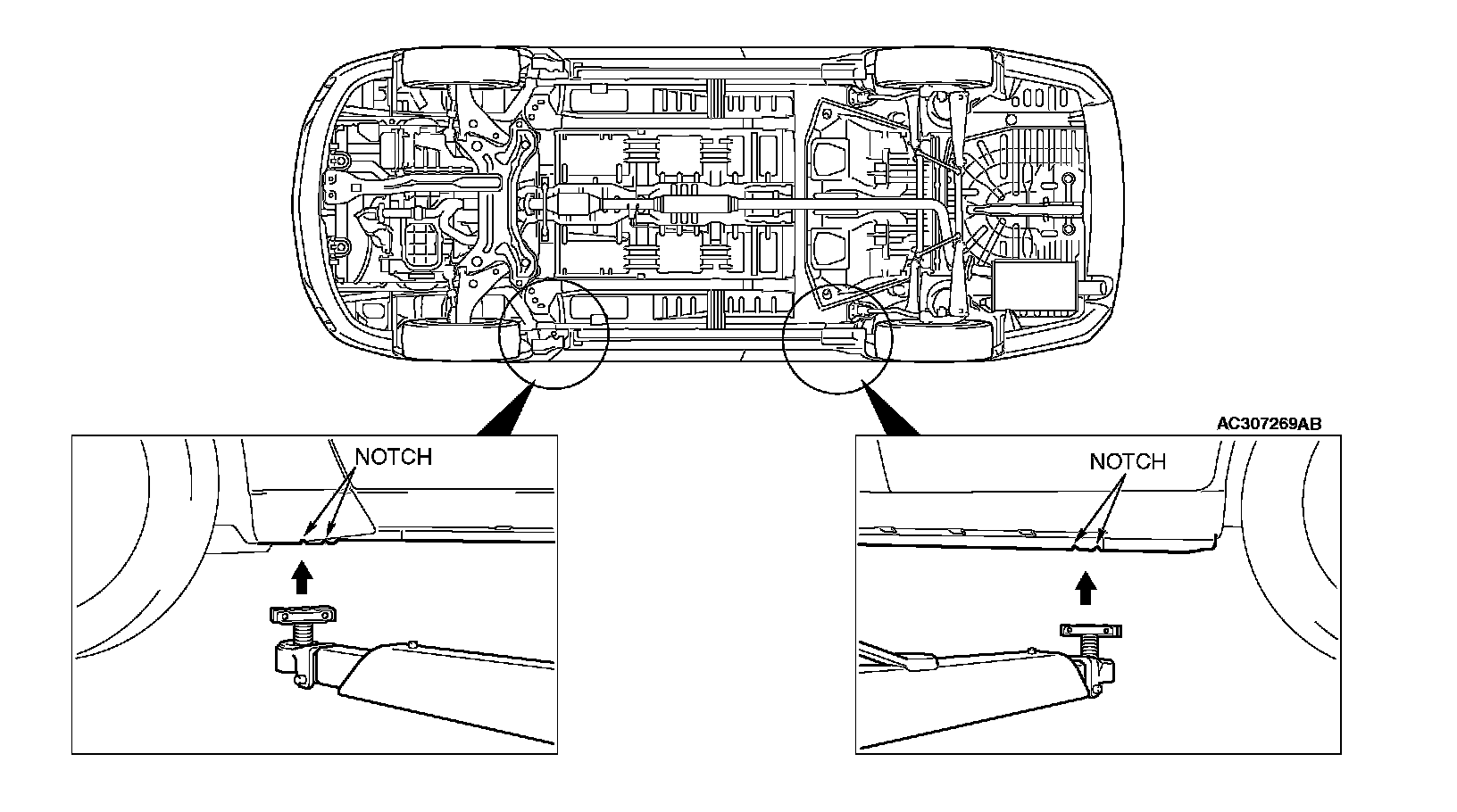 Special care should be taken when raising the vehicle on a frame contact type hoist. The hoist must be equipped with the proper adapters in order to support the vehicle at the proper locations.