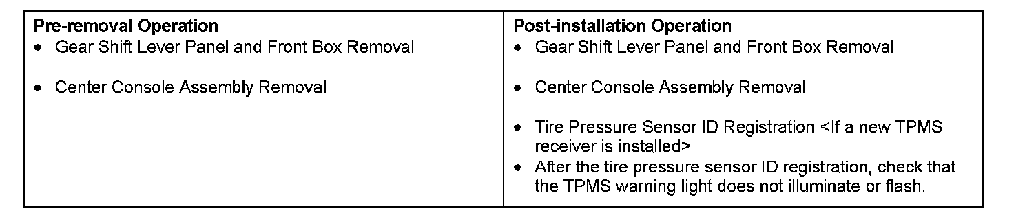 ^ If the TPMS receiver is replaced, execute "Tire Pressure Sensor ID Registration" on scan tool MB991958 "Special Function." Tire Pressure Sensor ID Registration