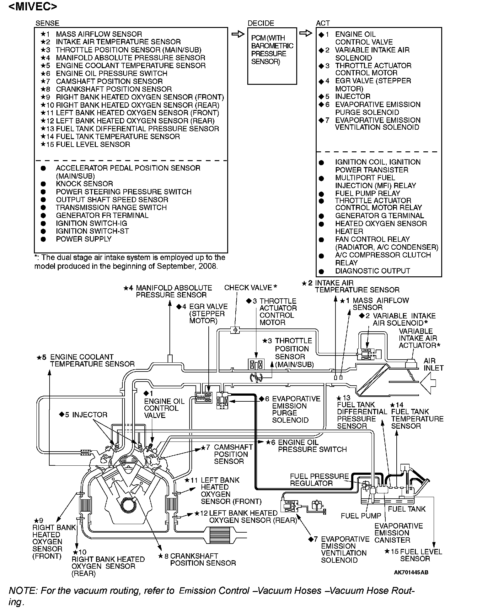 - The Mitsubishi Innovative Valve Timing Electronic Control System (MIVEC) has only one engine oil control valve installed to the cylinder head at the right bank side and switches the cams of the right and left banks.