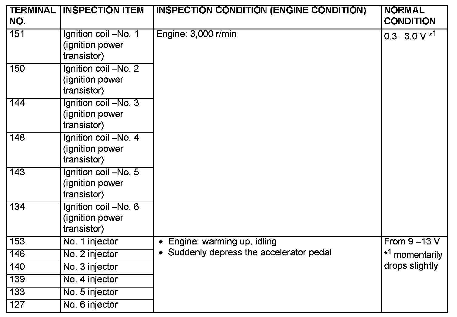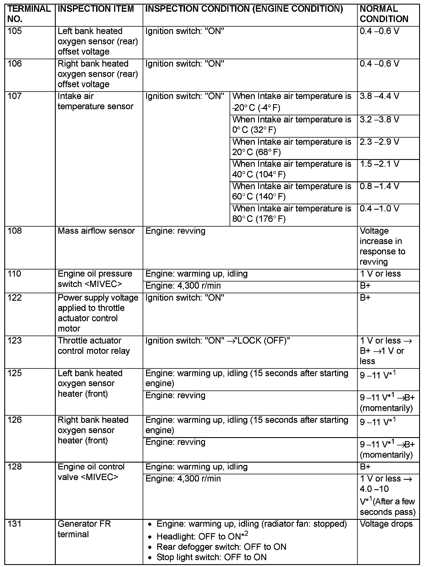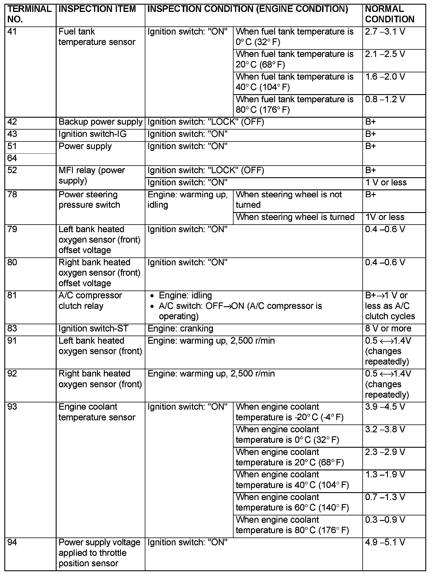 TERMINAL VOLTAGE CHECK CHART