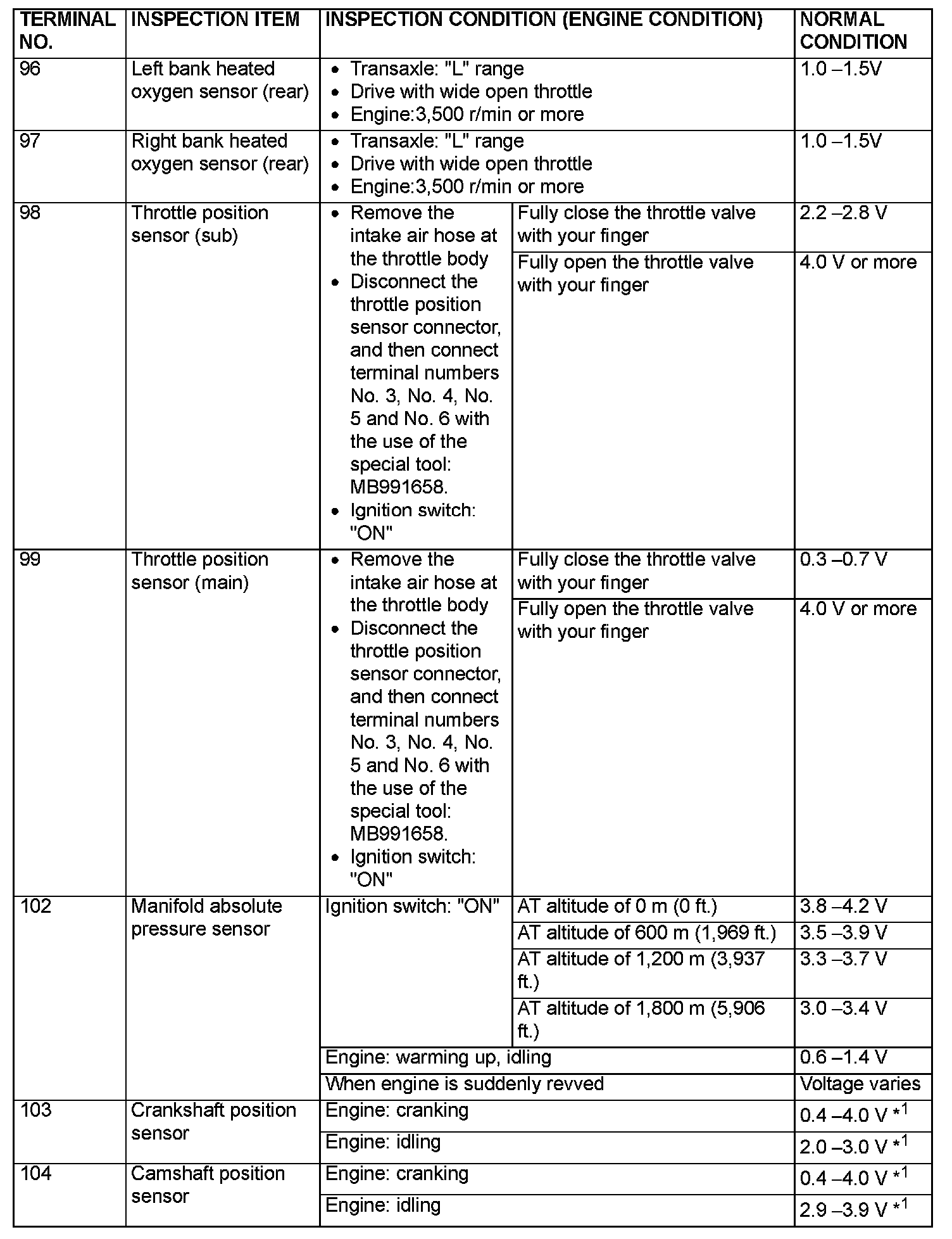 Check Harness Special Tool MB991923 Connector Terminal Arrangement (Part 4):