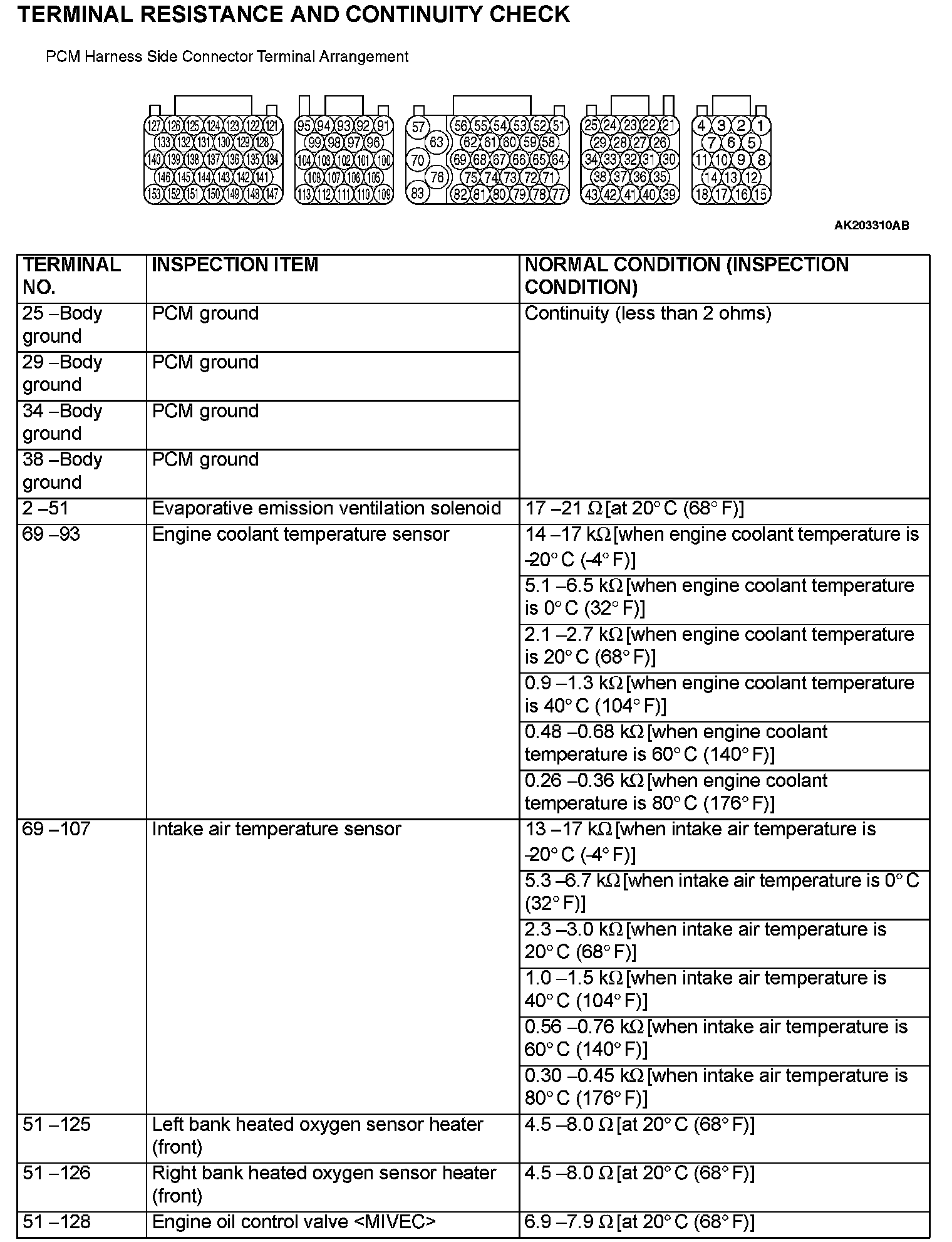 PCM Harness Side Connector Terminal Arrangement (Part 1):