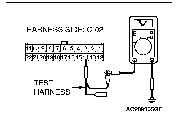 2. Connect special tool MB991970 (ABS check harness) to the ABS-ECU and the wiring harness, and measure the voltage at special tool MB991970 (ABS check harness).