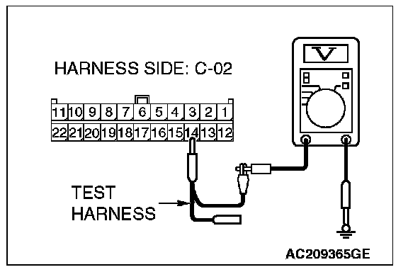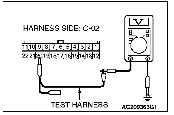 4. Measure the voltage between special tool MB991970 (ABS check harness) connector terminal 7 and body ground.