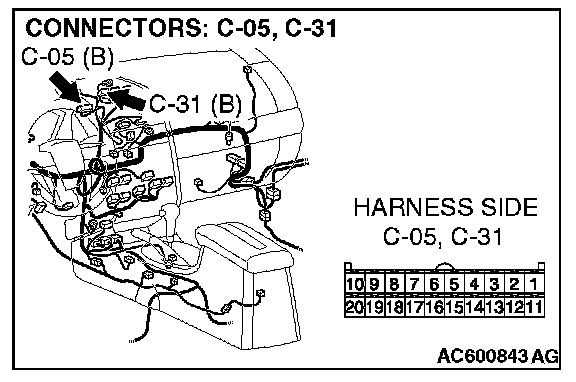Q: Is multi-center display unit (middle-grade type or vehicles with mitsubishi multi communication system) connector C-05 [multi-center display unit (middle-grade type)] or C-31 [multi-center display unit (vehicles with mitsubishi multi communication system)] in good condition?
