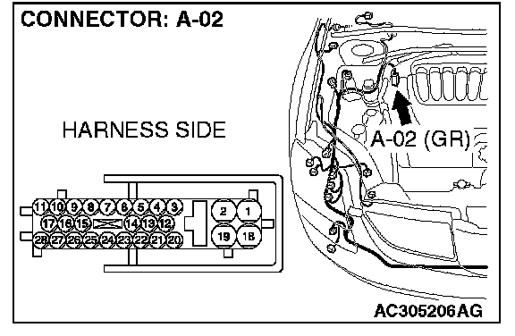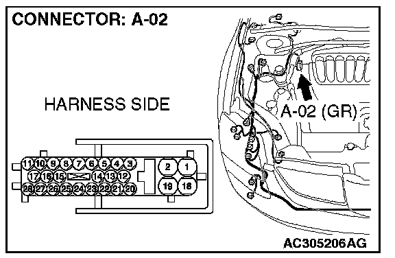 1. Disconnect ABS-ECU connector A-02.