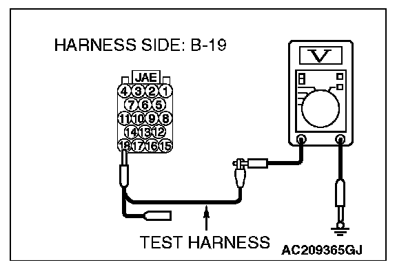 3. Measure the voltage between joint connector (3) terminal 19 and body ground.