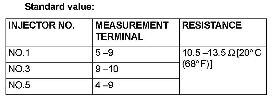 Standard value: 10.5 - 13.5 ohms [at 20 °C (68 °F)]