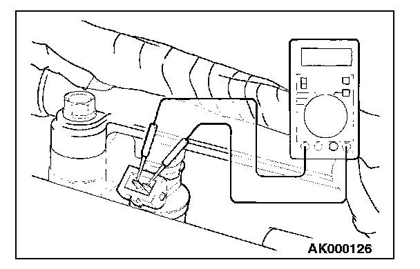 2. Measure the resistance between injector side connector terminals 1 and 2.