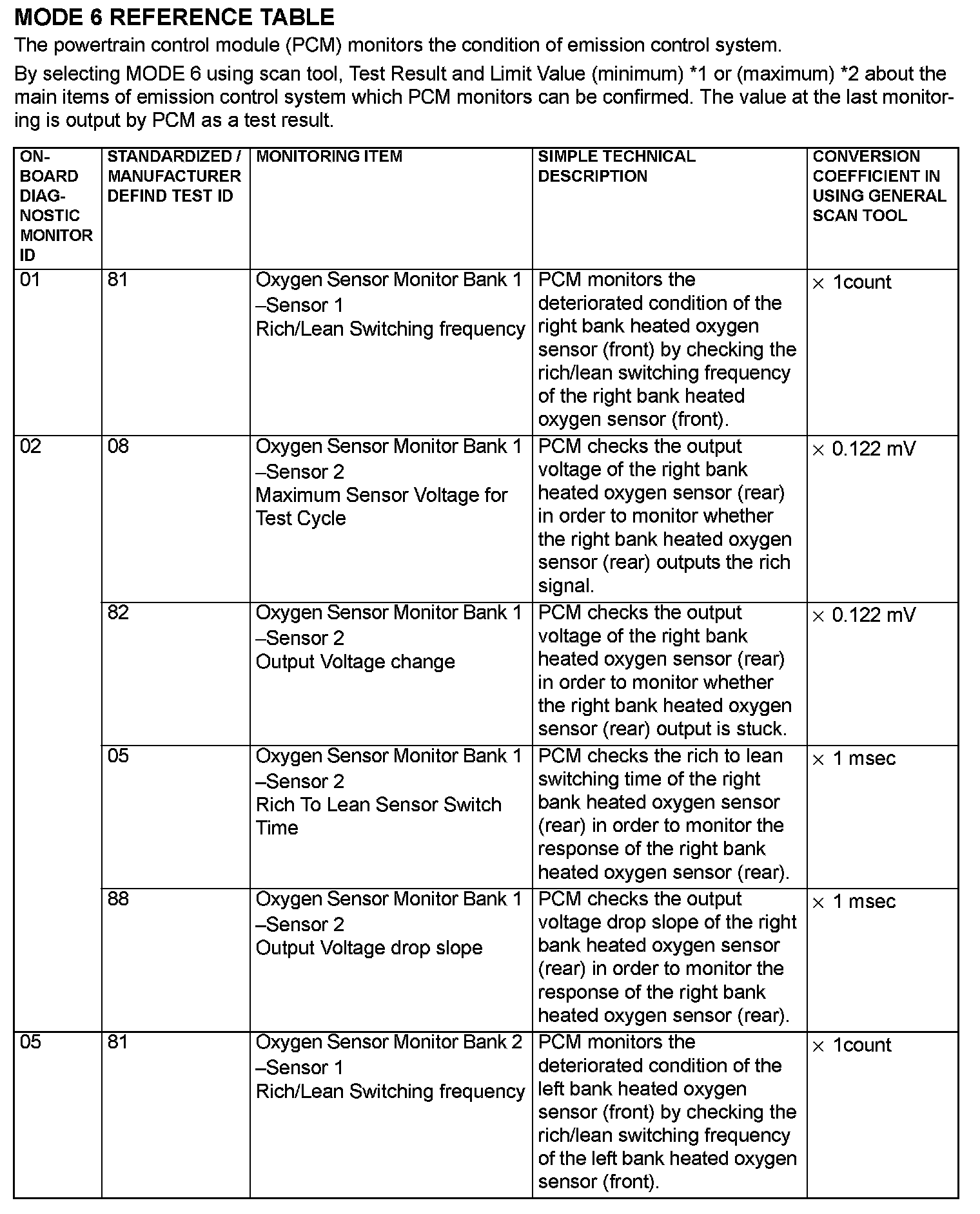 Mode 6 Reference Table (Part 1):