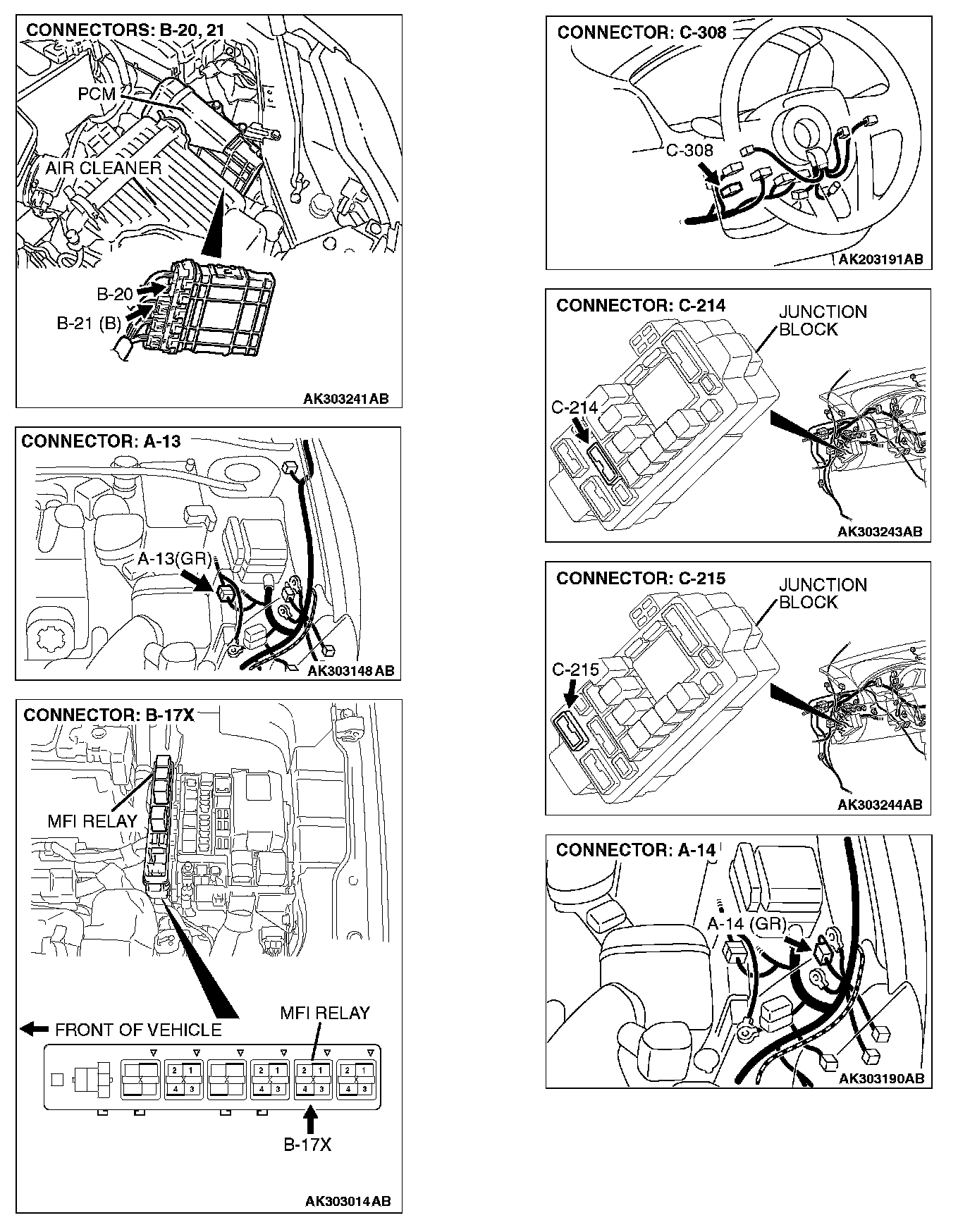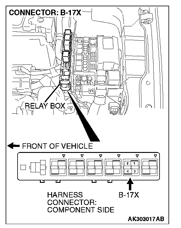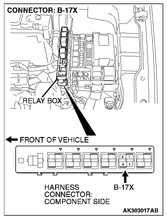 STEP 1. Check harness connector B-17X at MFI relay for damage.