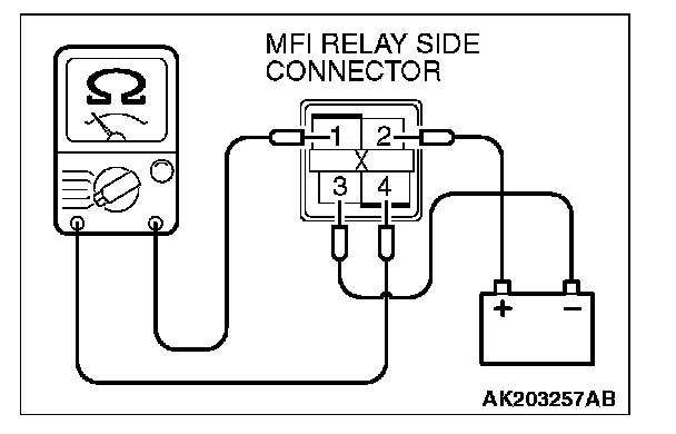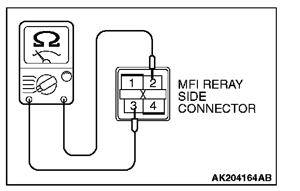2. Check for continuity between the MFI relay terminals No. 2 and No. 3.
