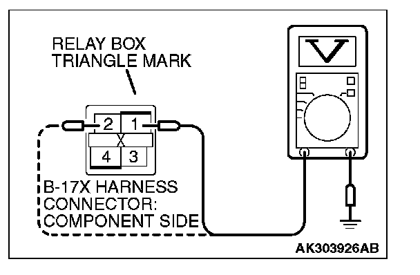 STEP 3. Measure the power supply voltage at MFI relay harness side connector B-17X.