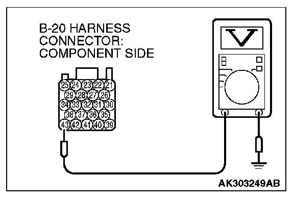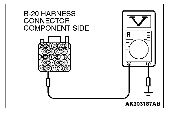 STEP 6. Measure the backup power supply voltage at PCM harness side connector B-20.