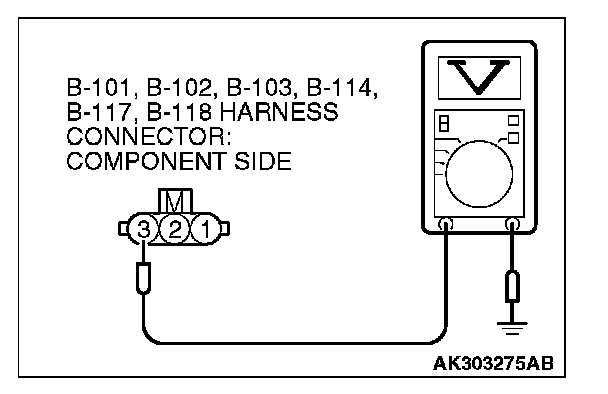 STEP 3. Measure the power supply voltage at ignition coil connectors B-101, B-102, B-103, B-114, B-117, B-118.