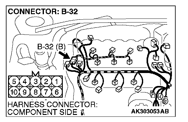 STEP 11. Check harness connector B-32 at the intermediate connector for damage.