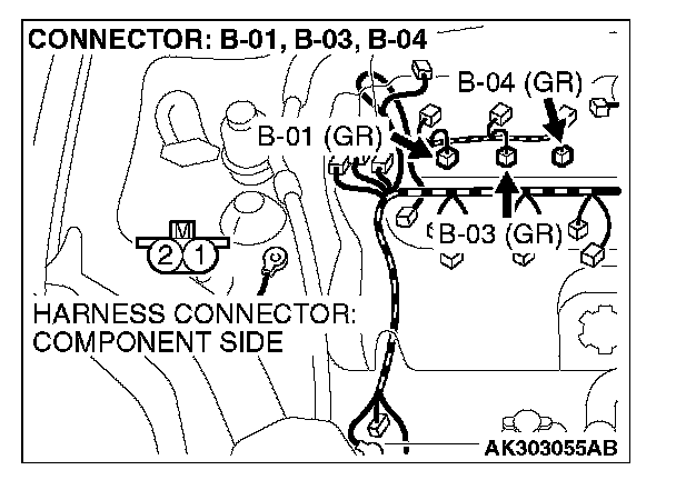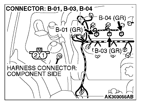STEP 10. Check harness connector B-01 or B-03 or B-04 at right bank injector for damage.